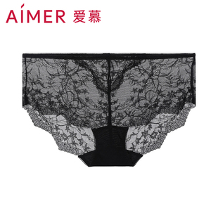 女花 爱慕内裤 藤蔓棉质底裆性感蕾丝中腰平角裤 3件包