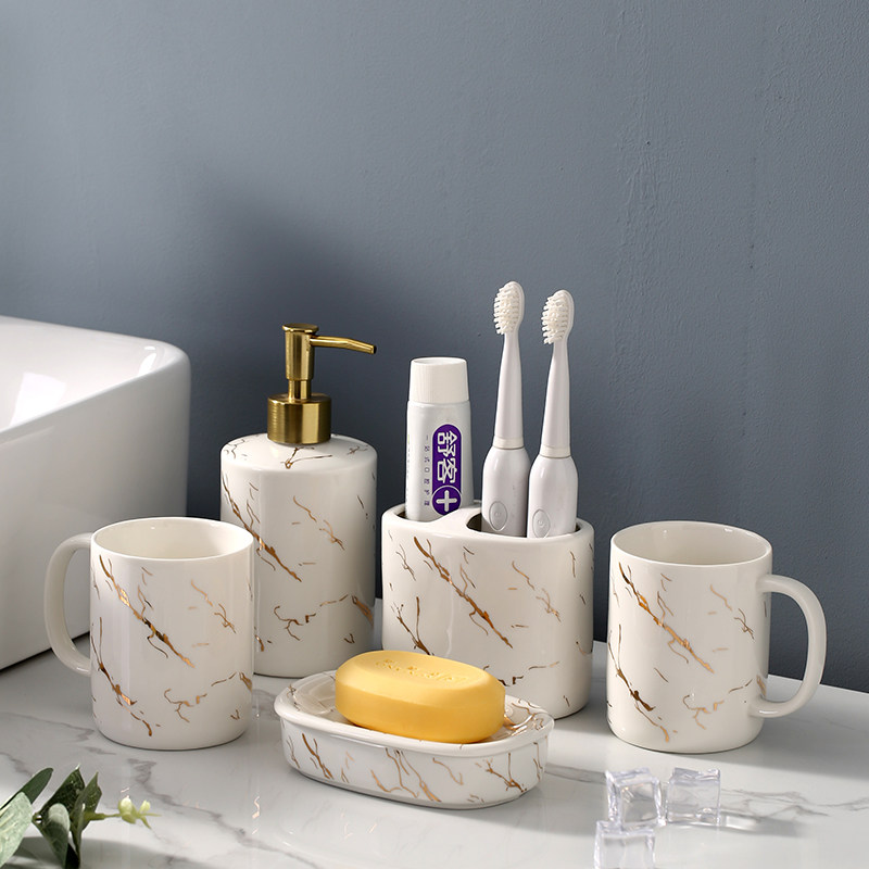 卫浴五件套现代轻奢洗漱套装 卫生间浴室用品套件牙刷架漱口杯全套