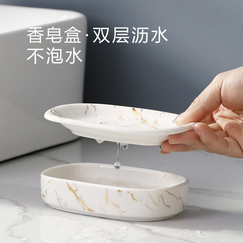 中古奶油风大理石浴室用品套装 样板间卫浴洗漱套件洗手台香薰托盘