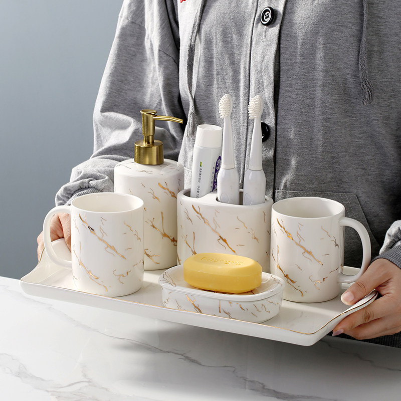 卫生间浴室卫浴洗漱用品套装 组合洗手台托盘轻奢漱口杯套件牙刷架