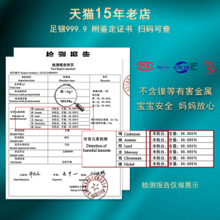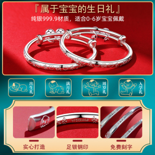 婴儿银手镯纯银9999银锁儿童银镯子平安锁满月礼物实心长命锁宝宝