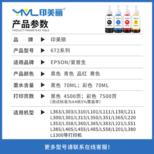 L3251 L3258喷墨彩色爱普生打印机墨水 L3151 L3256 L3255 L3253 L3158 L3156 L3153 墨水 EPSON爱普生004原装