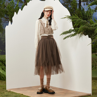 小香风外套 新款 PIT复古提花马甲设计感短款 方领百搭背心冬季