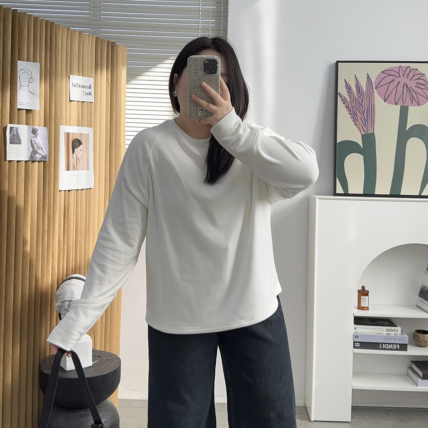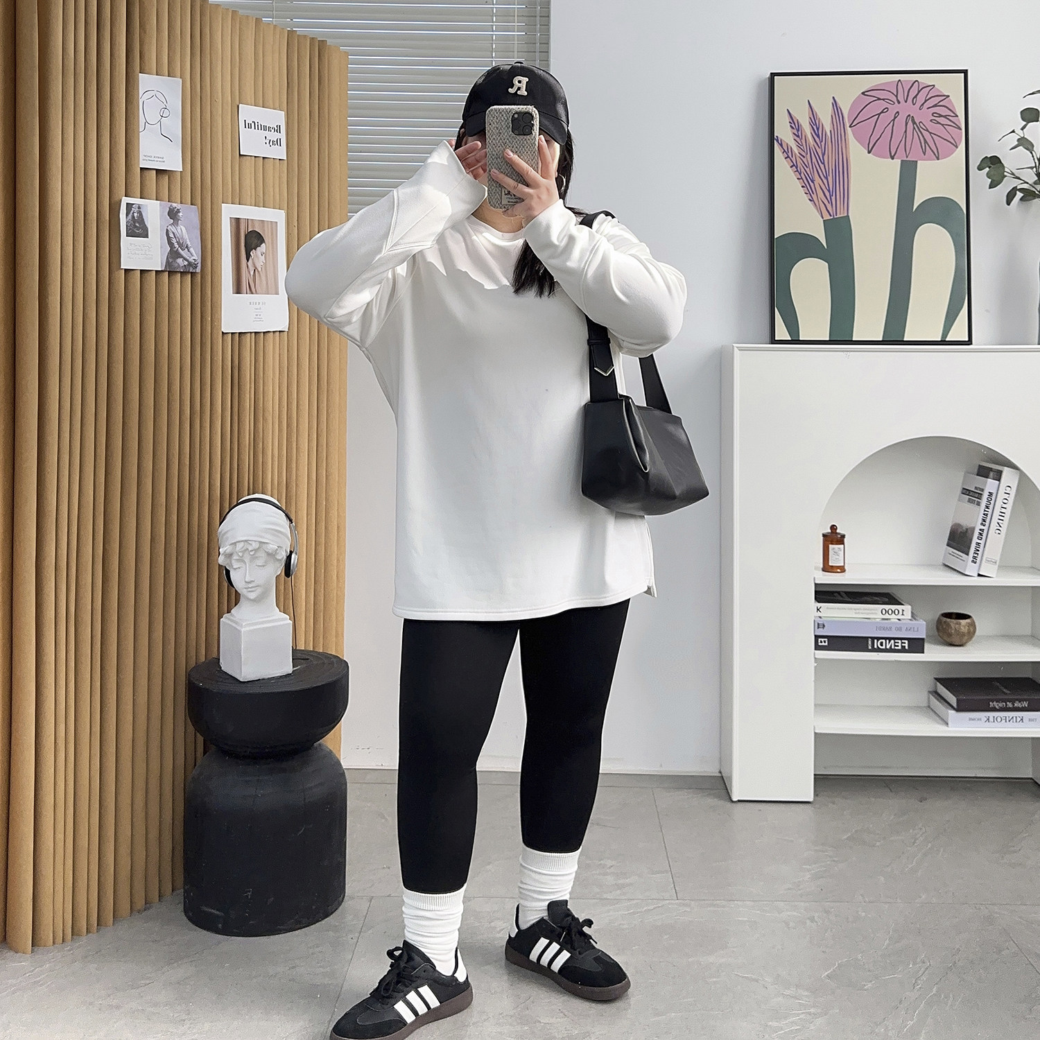 女装 长袖 中长款 显瘦打底衫 圆领T恤 宽松上衣胖mm加大码 宛宛家韩版