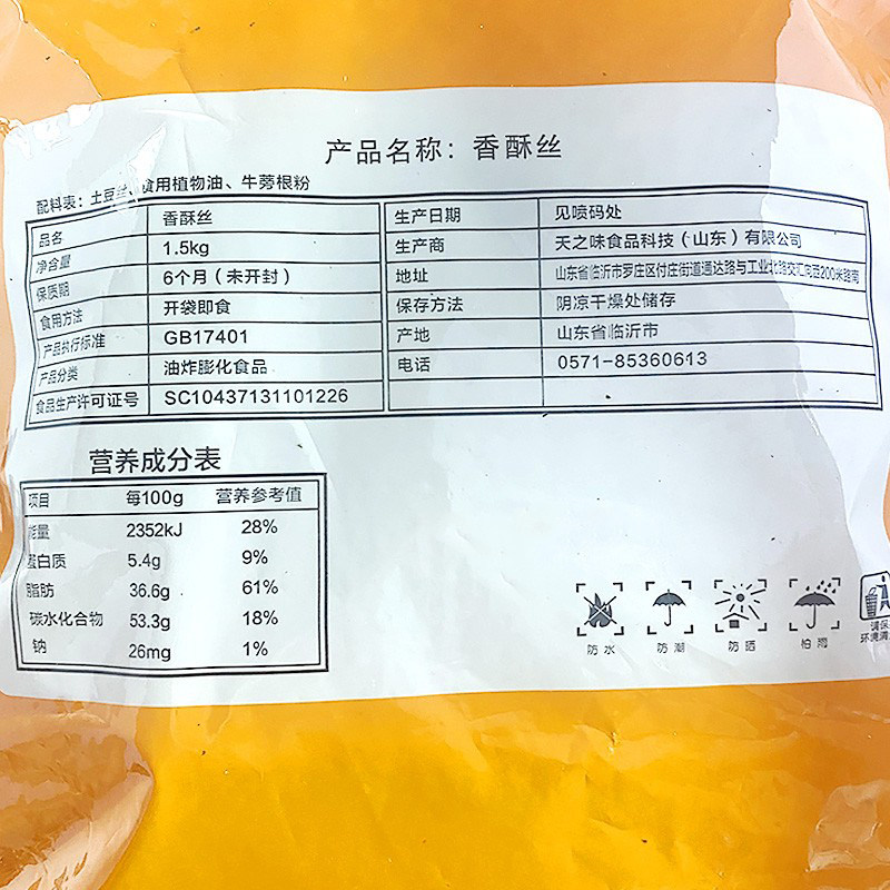 寿司材料牛蒡丝香酥丝1.5KG 寿司千丝脆寿司香脆丝美味脆条 5包