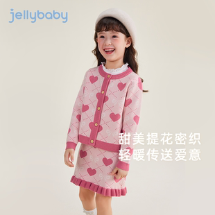 红色裙子大童冬季 女童秋冬针织套装 时髦洋气小香风童装 32支高纱