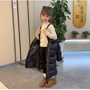 三防加厚中大童女孩外套 儿童高级黑色过膝长款 女童羽绒服冬季 新款