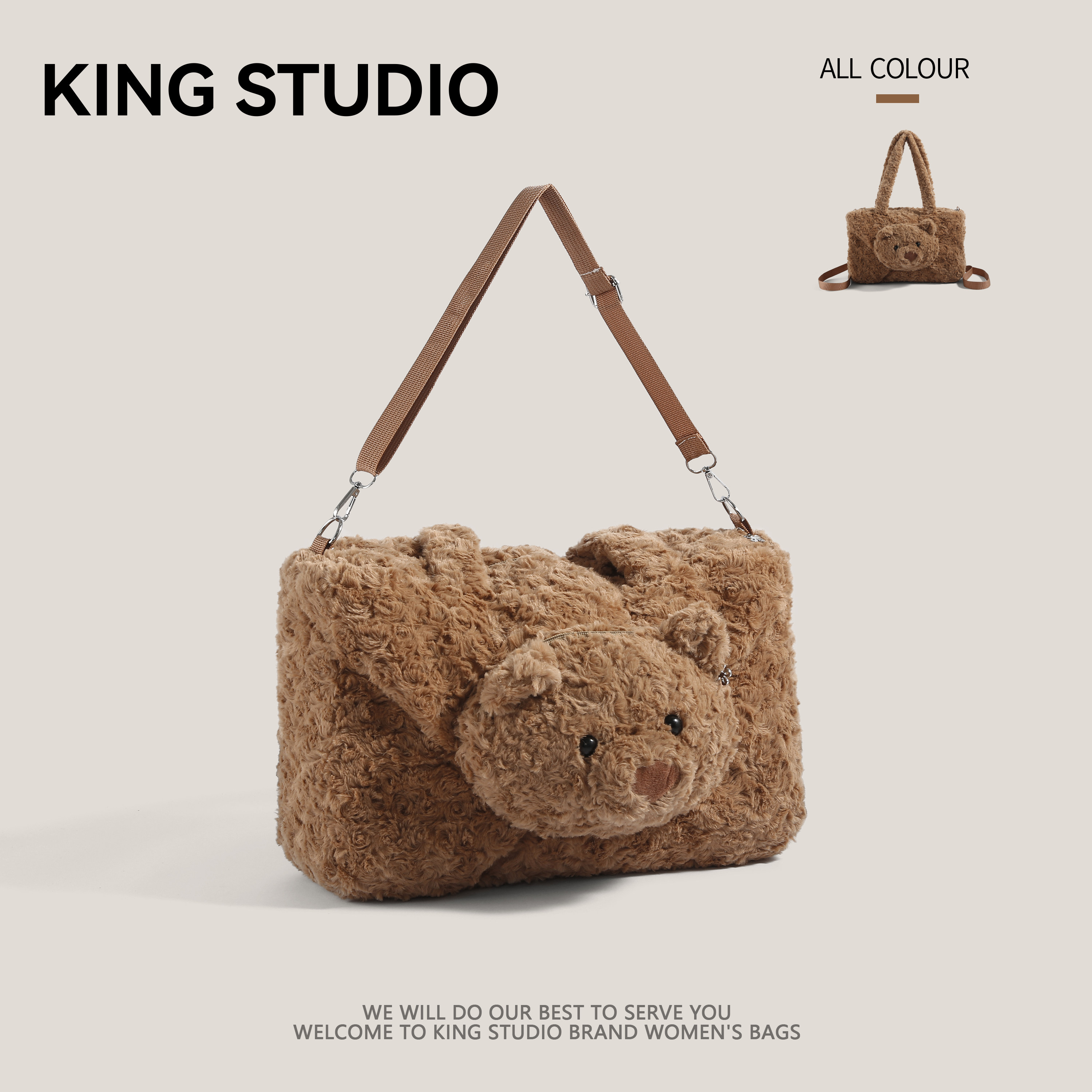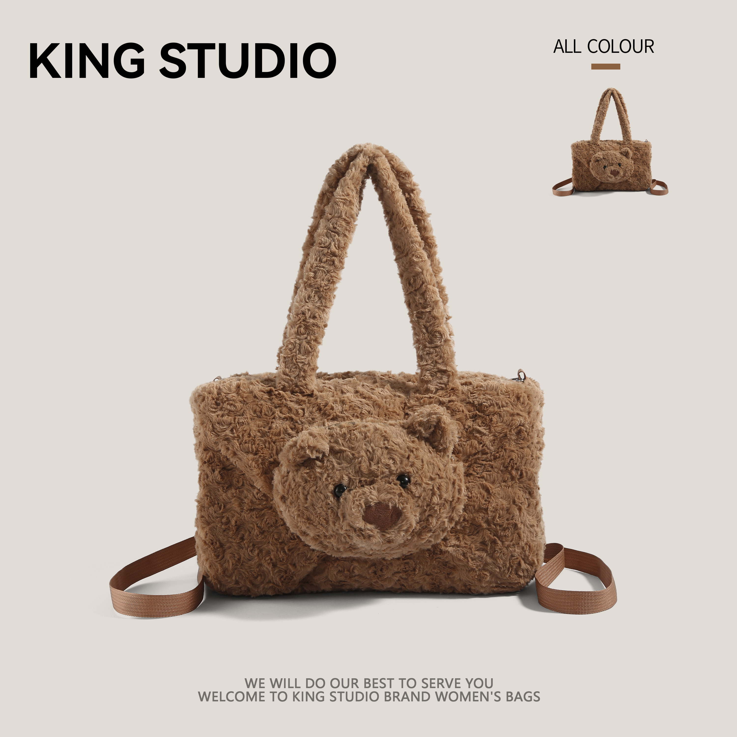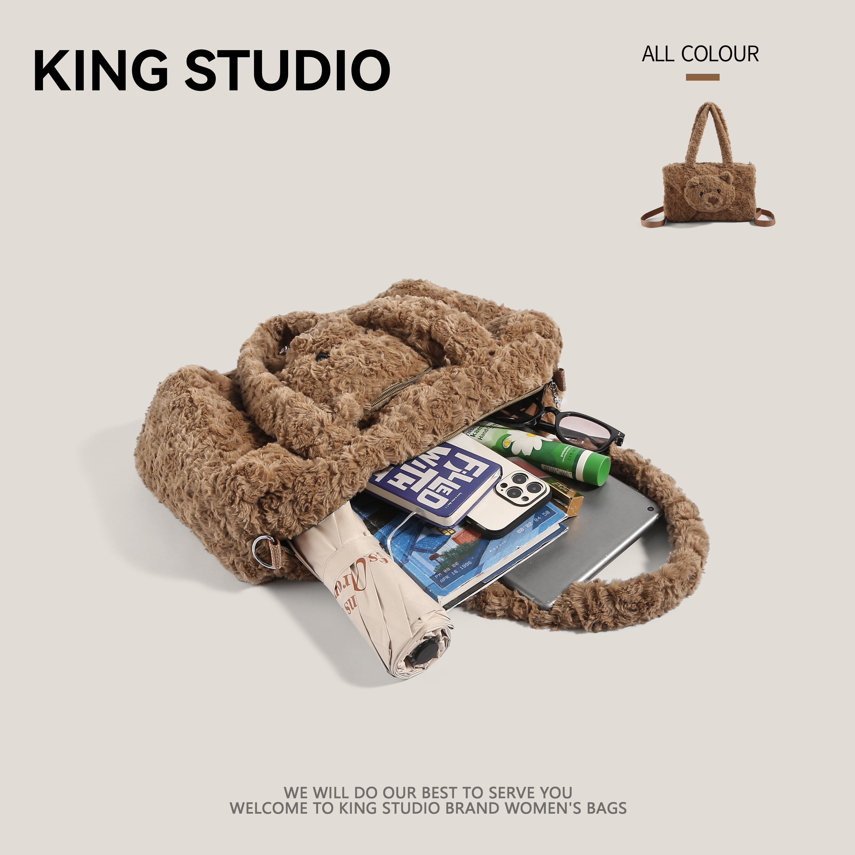 卡通毛绒包包女2025新款 可爱玩偶小熊包大容量双肩背包通勤托特包