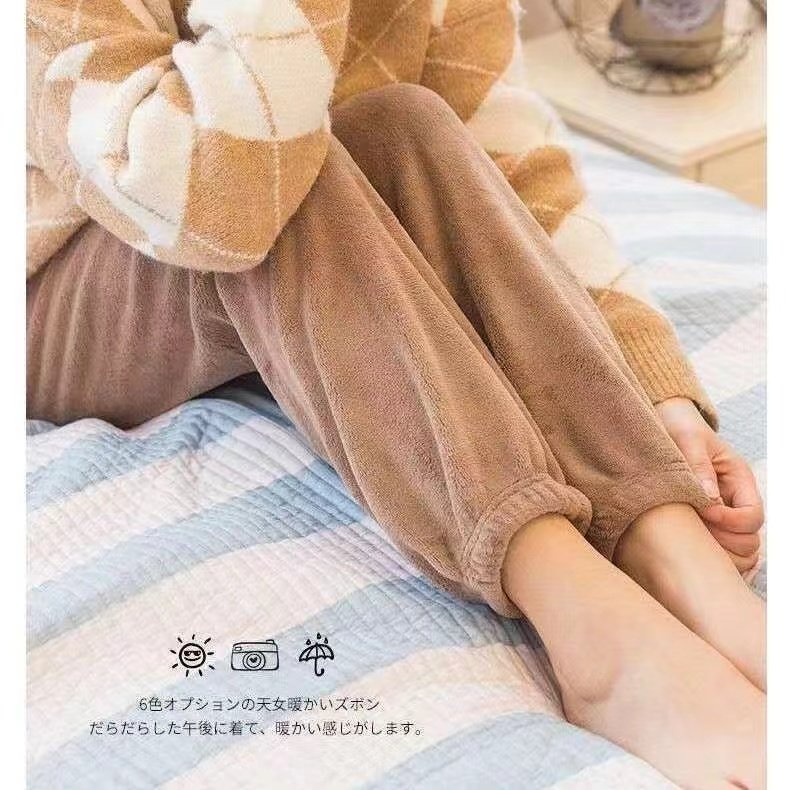 居家学生懒人裤 仙女暖暖裤 珊瑚绒休闲宽松睡裤 保暖新款 洋气 女冬季