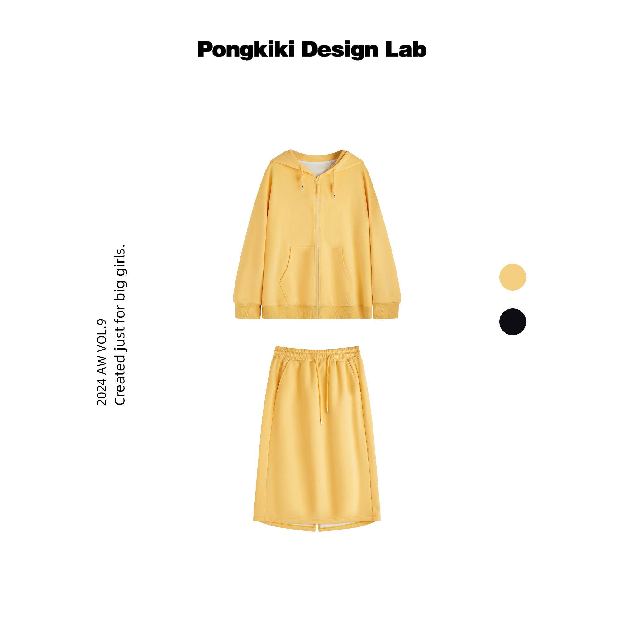 两件套 连帽卫衣外套裙子长裤 老章和小胖PONGKIKI加绒慵懒套装 大码