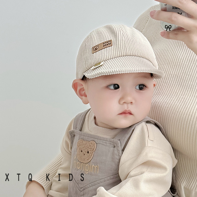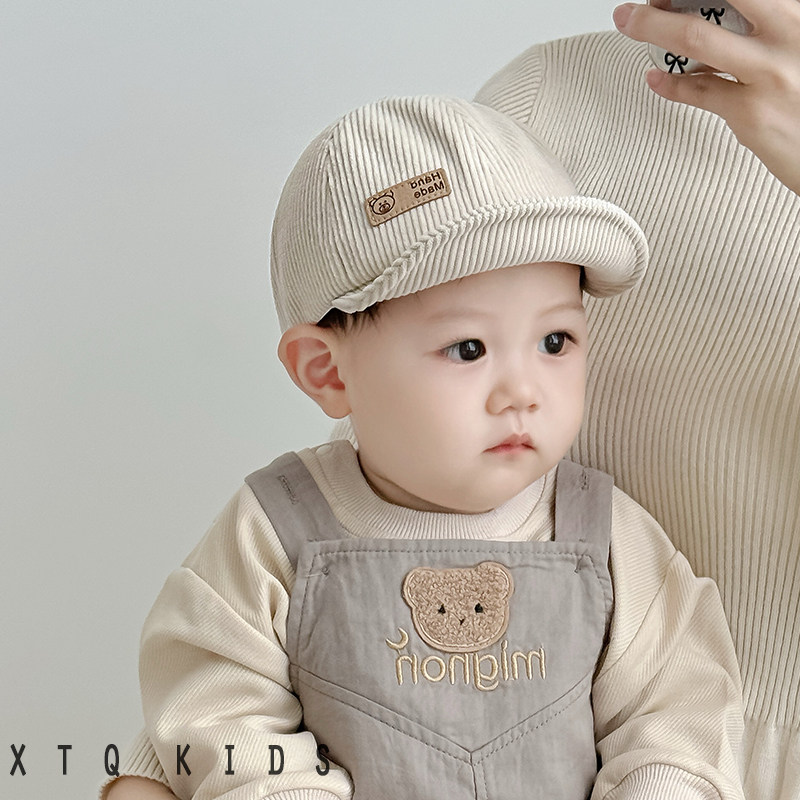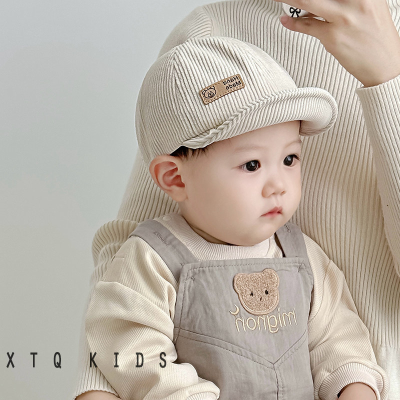日系可爱小熊刺绣棒球帽子女秋季 磨毛复古大头围鸭舌帽显脸小百搭