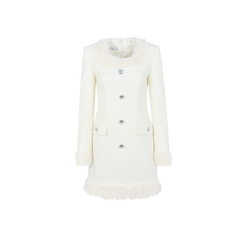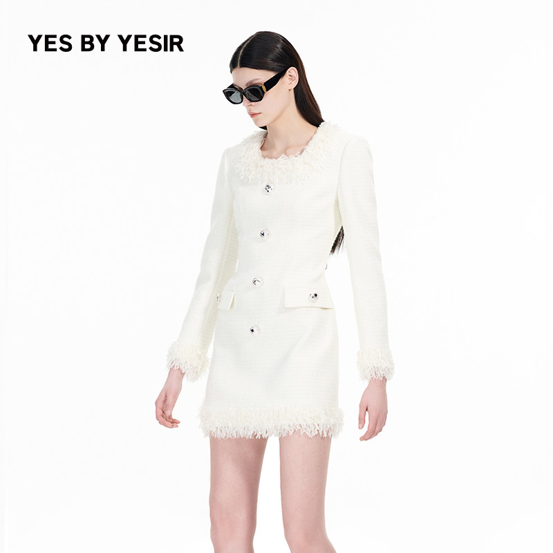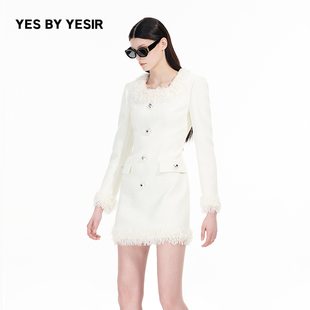 玲珑名媛珍珠白香风连衣裙 YESIR叶谦原创设计冬新款 YES
