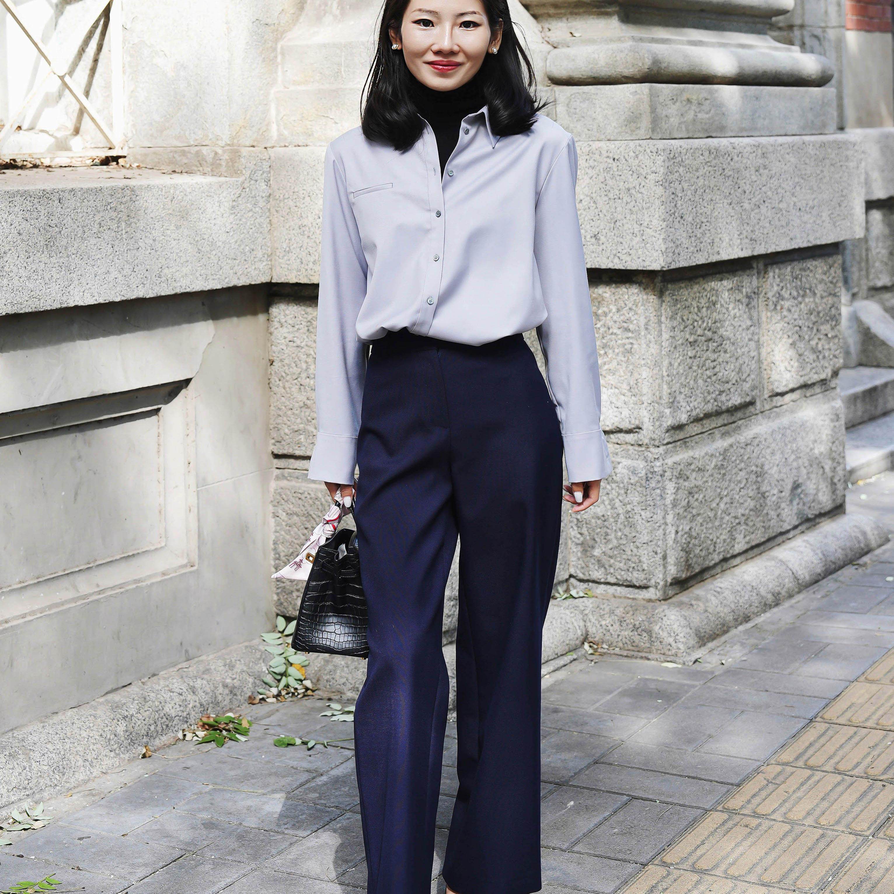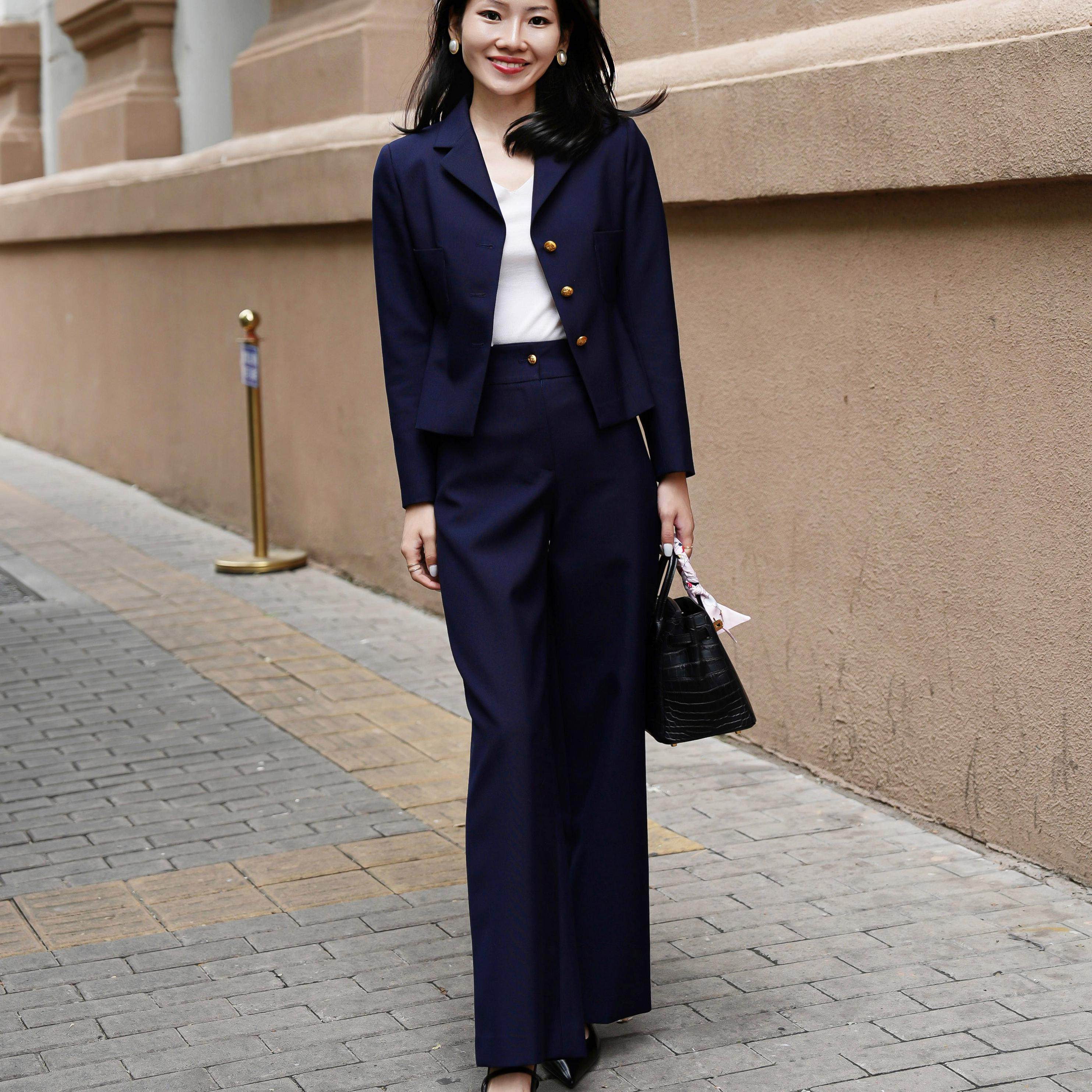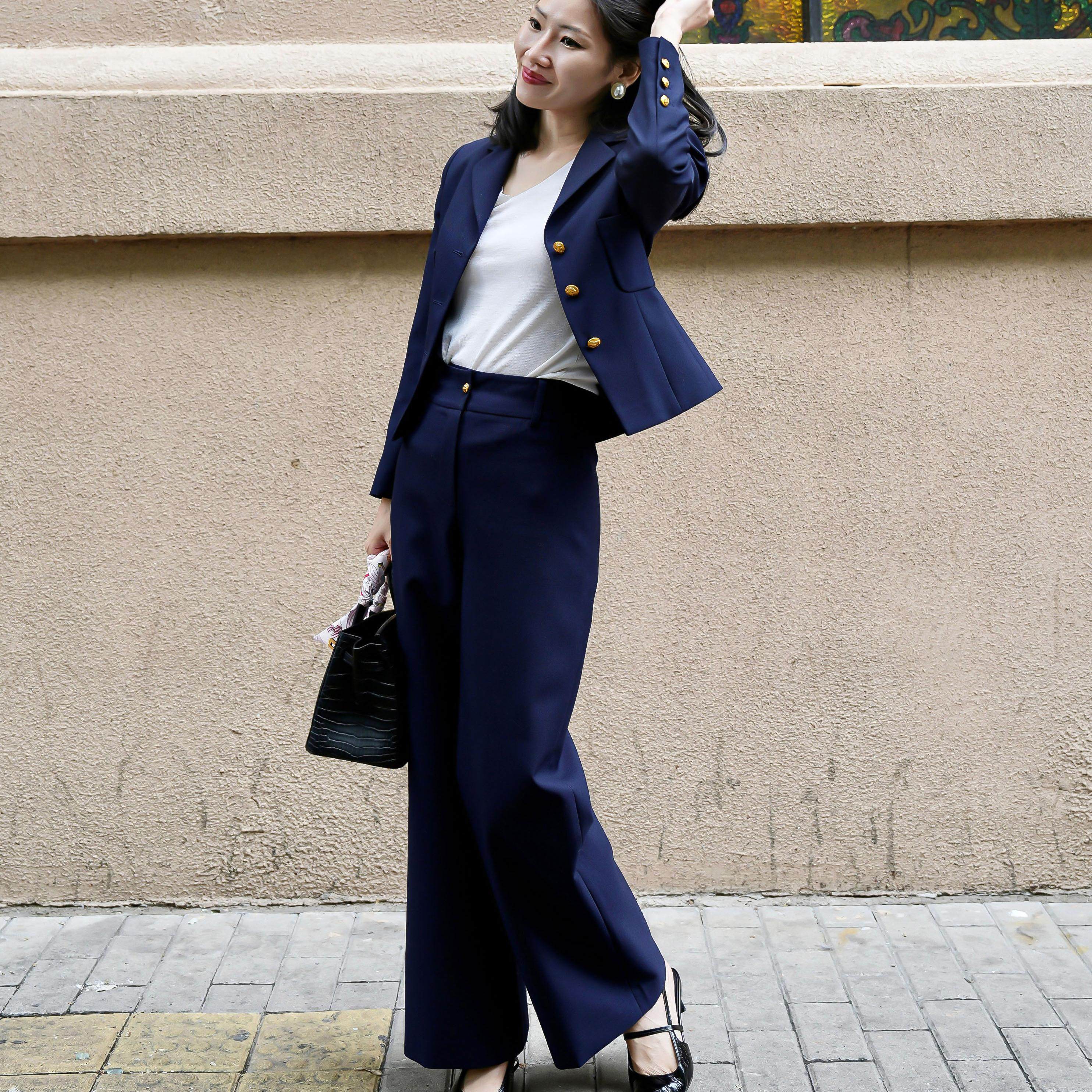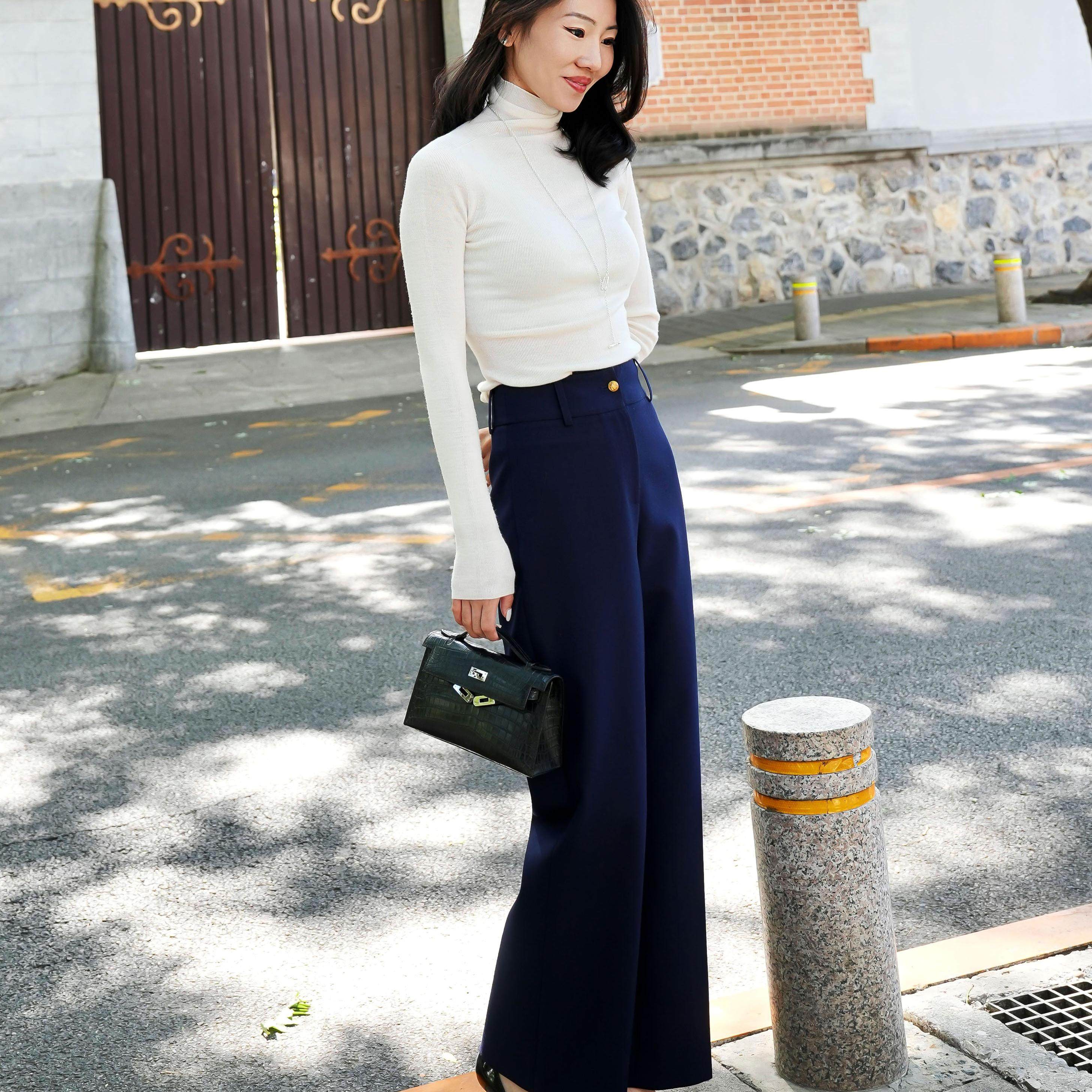 RZOTTO限定高支高密精纺澳毛阔腿女西裤 LadyJ 底气 藏蓝