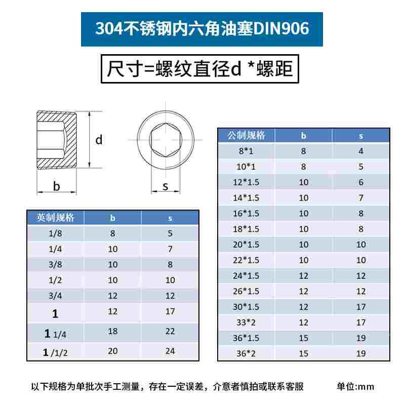 304不锈钢内六角油塞堵头 公制 内六角丝堵管堵螺塞 NPT