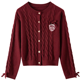 女上衣气质新年红色毛衣 安可拉红针织开衫 BANANA BABY秋冬新款