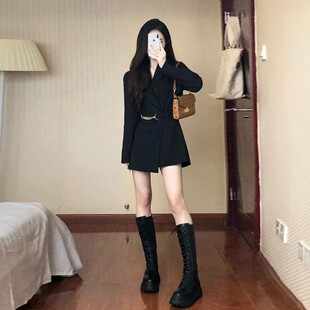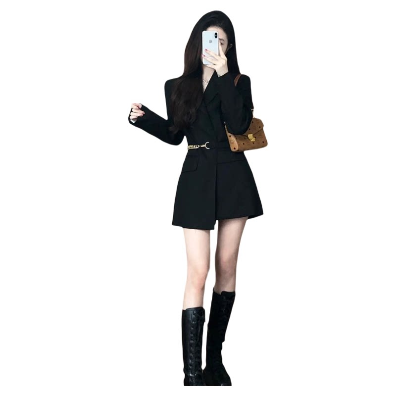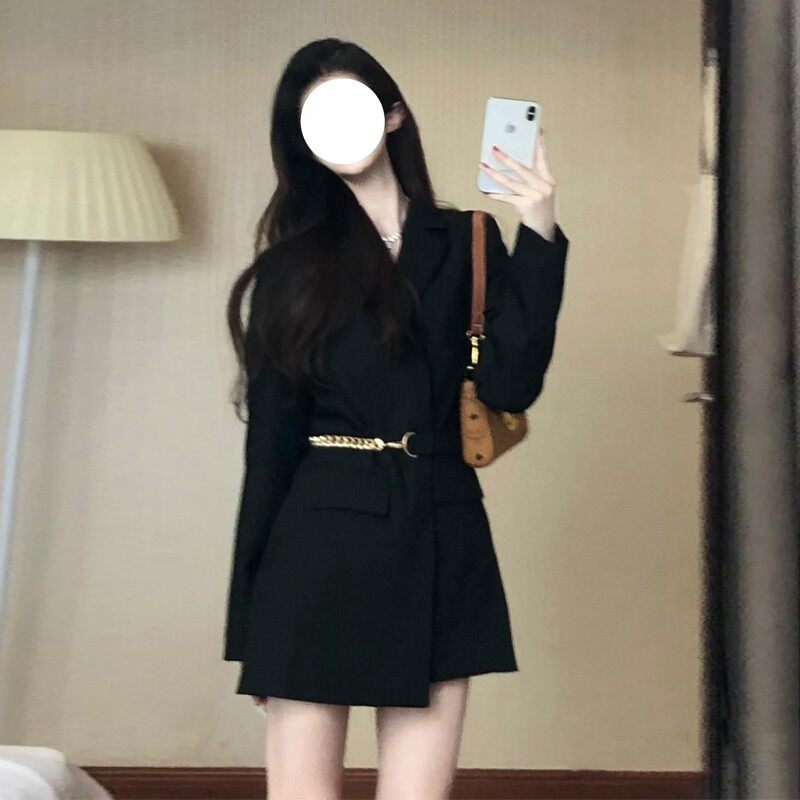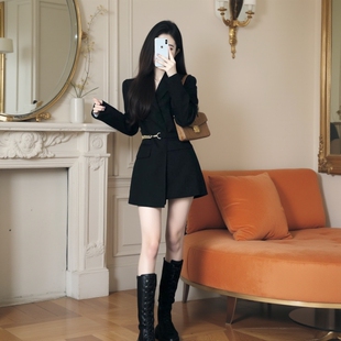 外套高腰裙6539 小个子西装 高级感黑色收腰显瘦连衣裙2026春季 新款