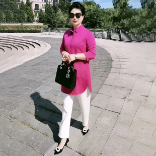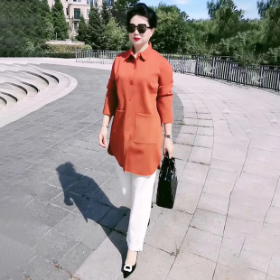 外套 衬衣大码 高端纯色空气棉风衣春秋新款 宽松显瘦中年妈妈中长款