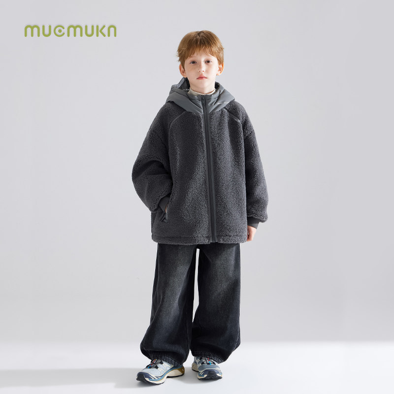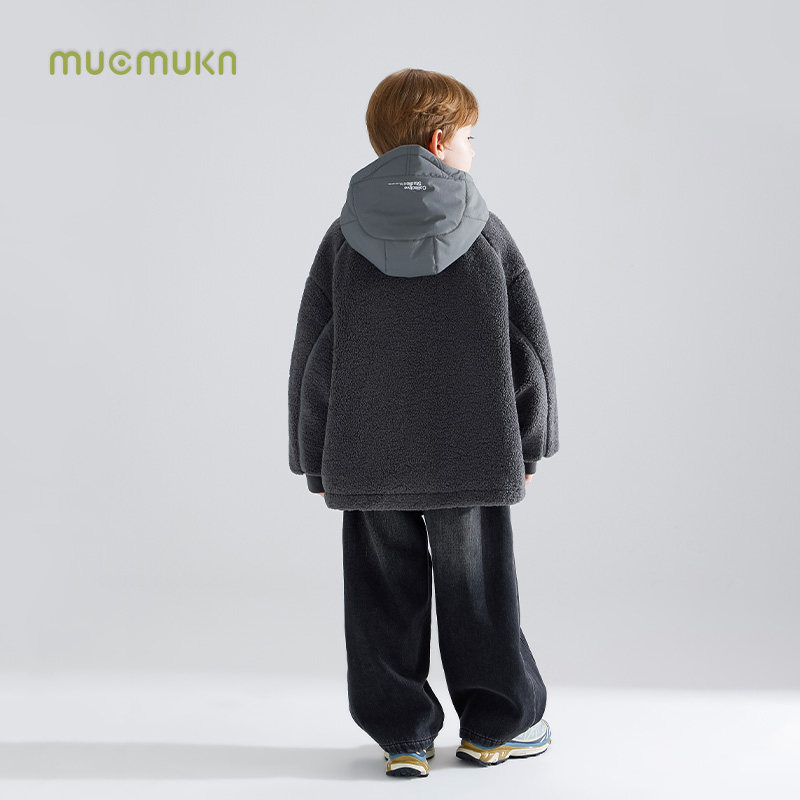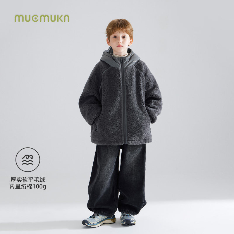 儿童男童棉衣 厚实毛绒外套加棉拼接潮酷休闲冬新款 银灰太空船