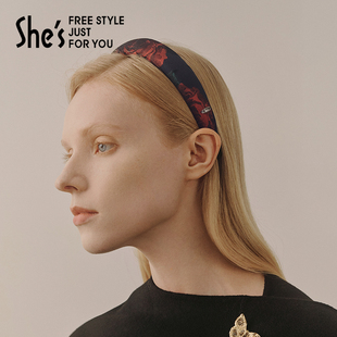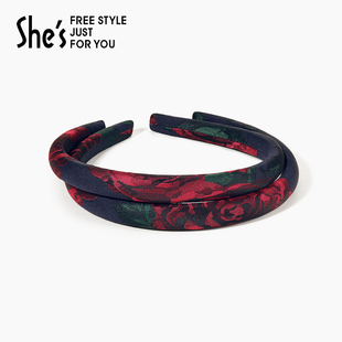 shes茜子轻简循迹复古玫瑰提花发箍头箍设计感发卡时尚 外出发饰