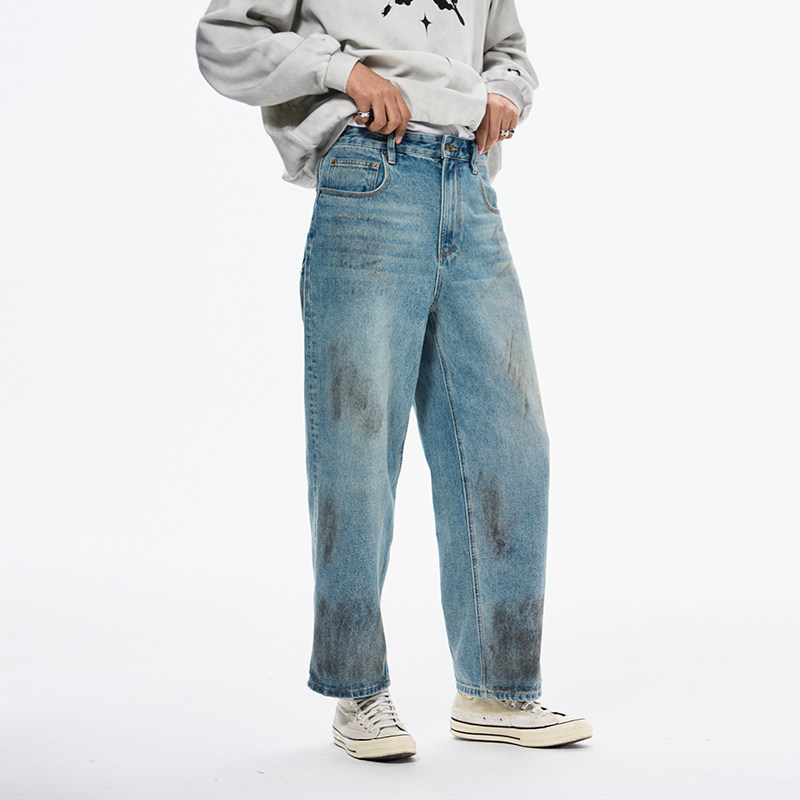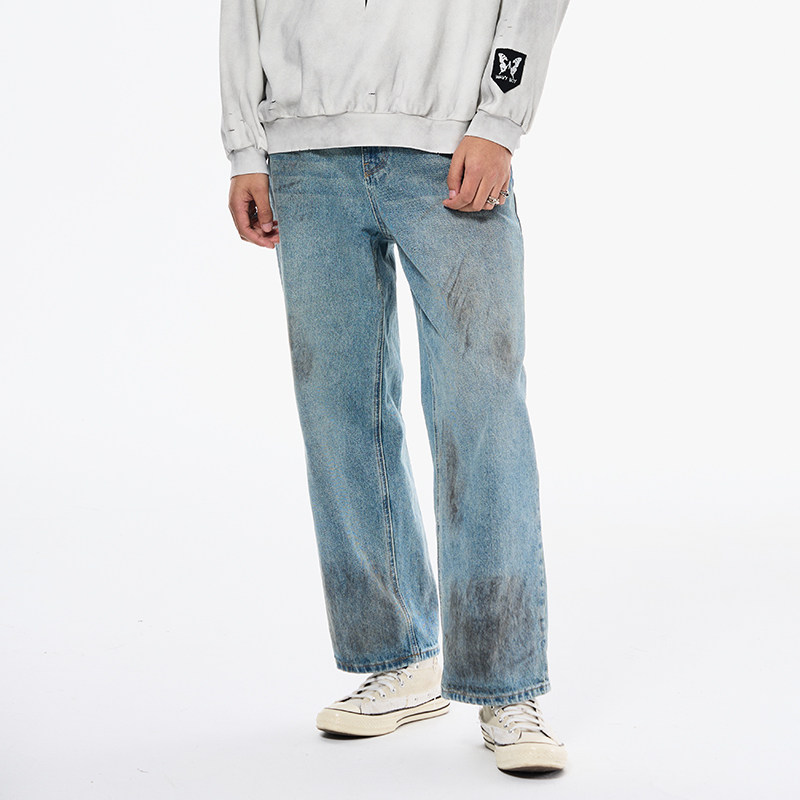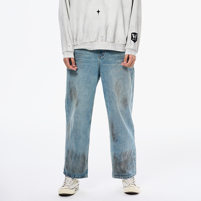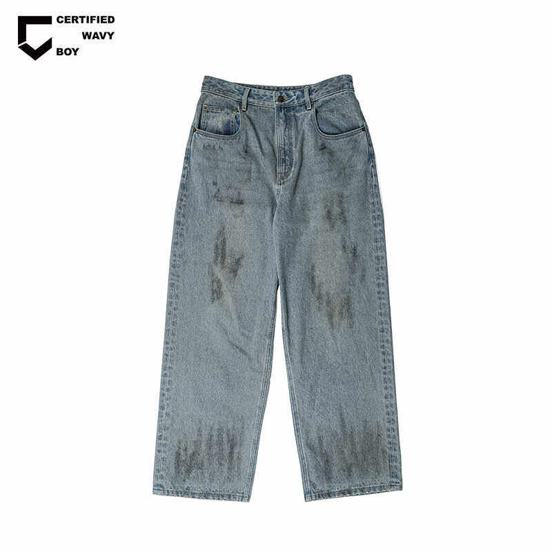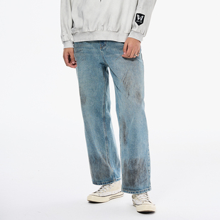 牛仔裤 休闲裤 直筒高街美式 时尚 复古废土风做旧新脏脏裤 WAVYBOY