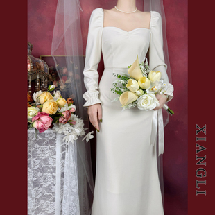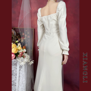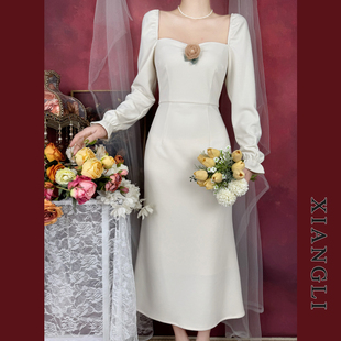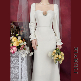 巷里法式 宫廷赫本显瘦轻奢订婚登记轻奢礼服鱼尾裙 复古连衣裙秋装