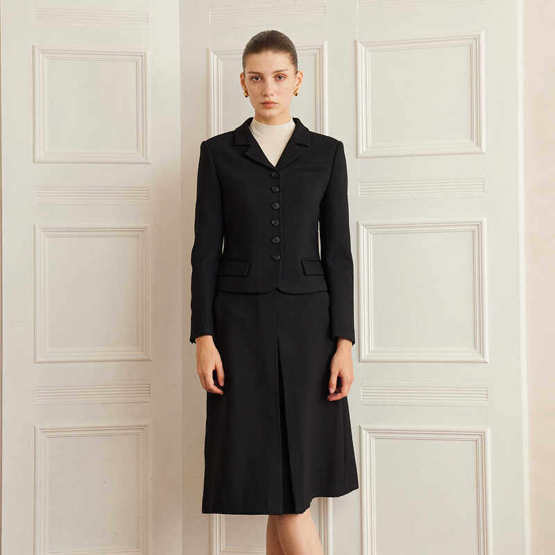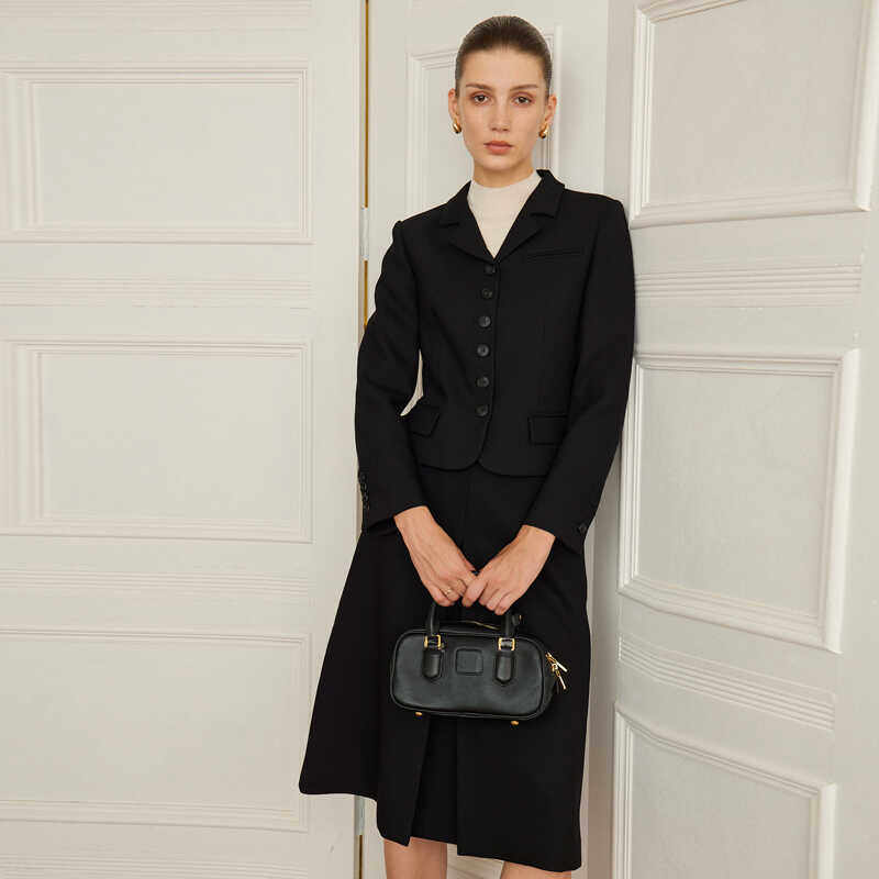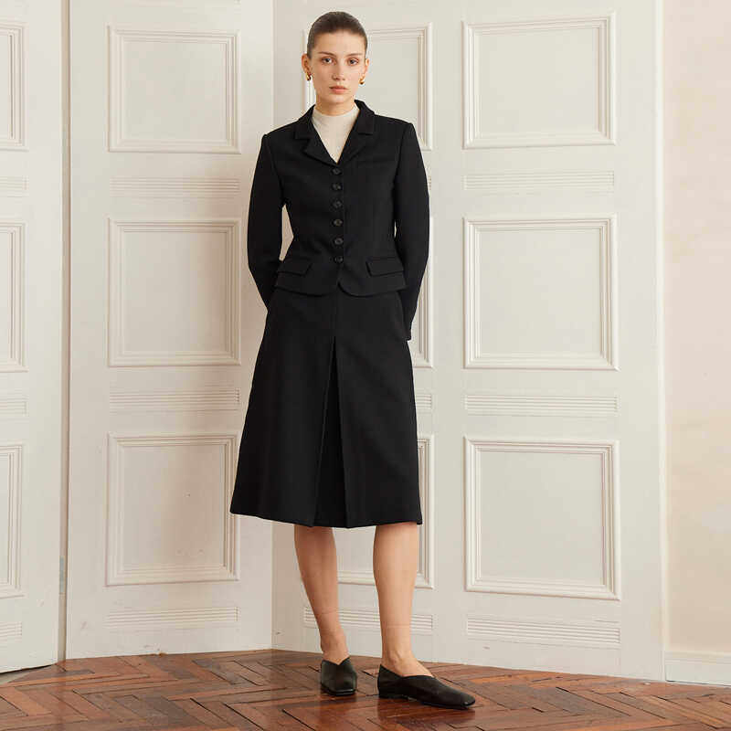 高级感西装 女秋秋季 不规则半裙 ROW风精仿羊毛职业套装 NANCYLILI