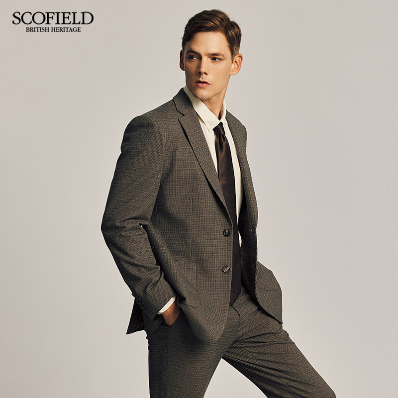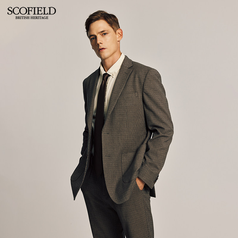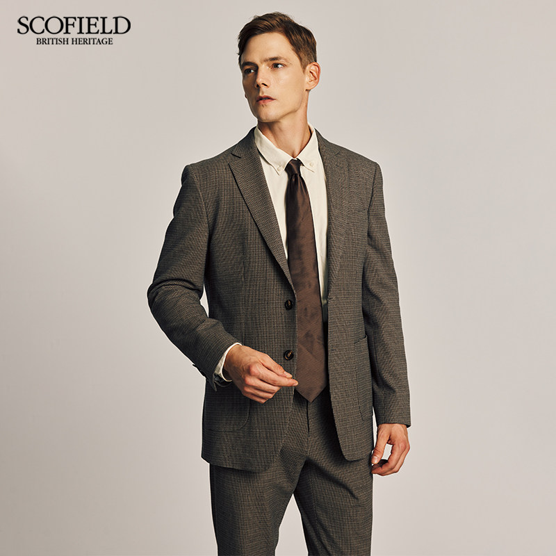 商务休闲外套西服单件时尚 SCOFIELD男装 复古格纹西装 新款 25年春季