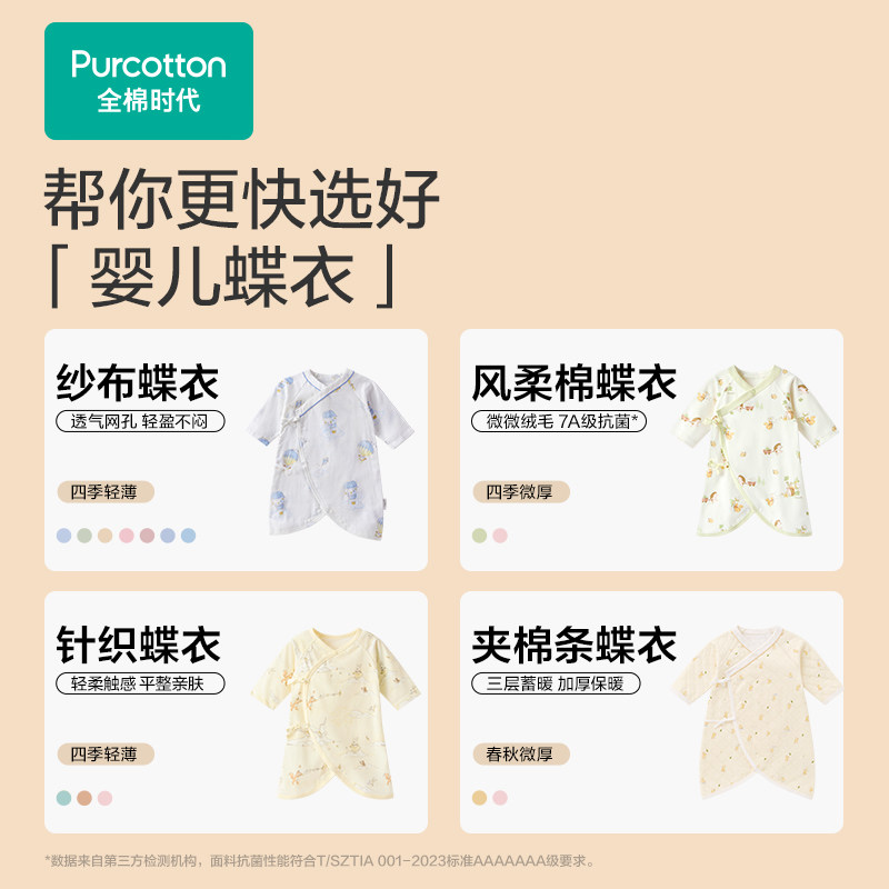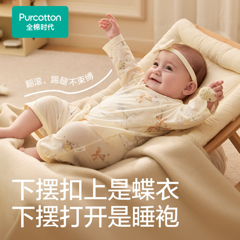全棉时代蝴蝶衣纯棉风柔棉针织秋冬新款 新生婴儿连体衣宝宝衣服
