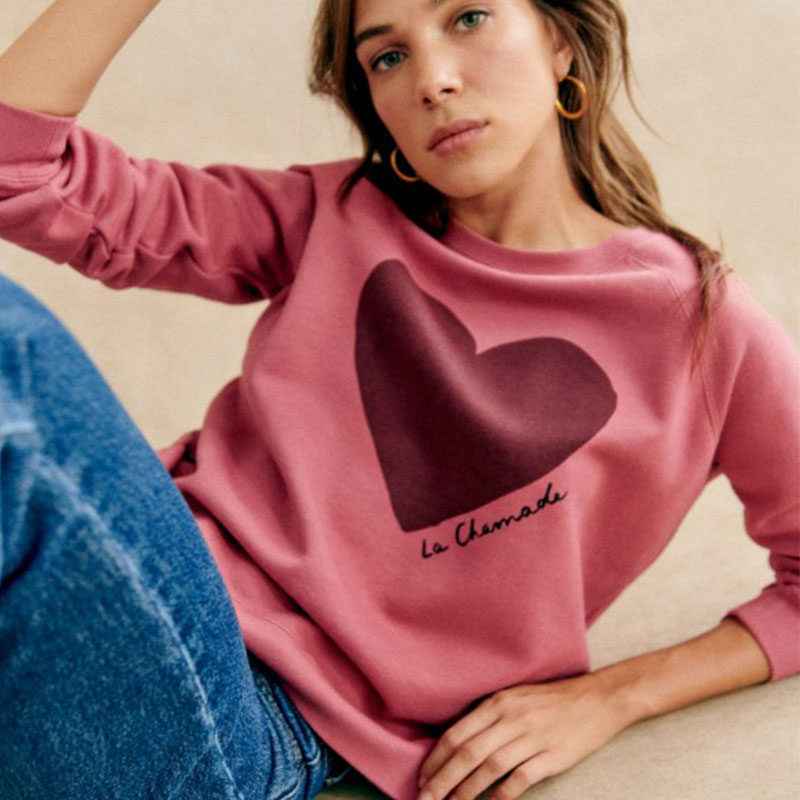 小众秋冬复古清新纯棉字母爱心印花宽松套头卫衣上衣 法式 经典 款