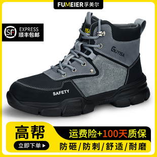 加绒棉鞋 士防砸防刺穿钢头绝缘轻安全钢板工地冬季 男款 高帮劳保鞋