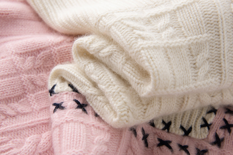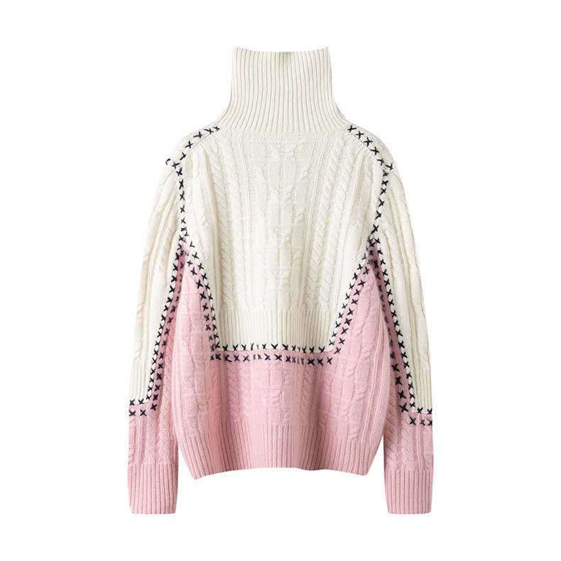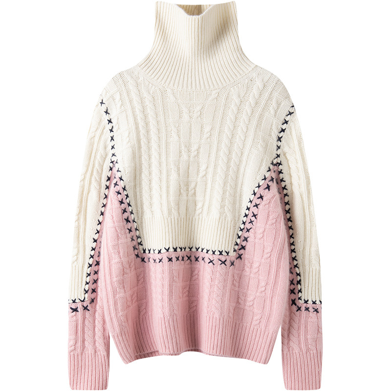 版 手工线缝线撞色拼接绞花高领羊绒保暖毛衣秋冬 型质感狂hao