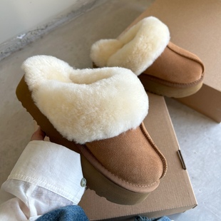 毛拖 女厚底包头拖增高外穿星拖千颂伊同款 2025冬新款 皮毛一体拖鞋
