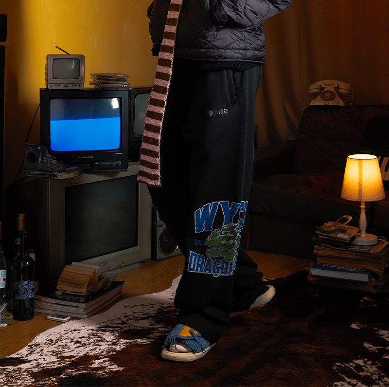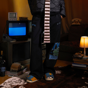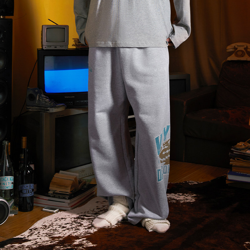 华人青年WYCN龙印花直筒卫裤 子 男潮牌休闲宽松垂感纯棉运动阔腿裤