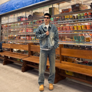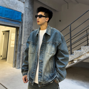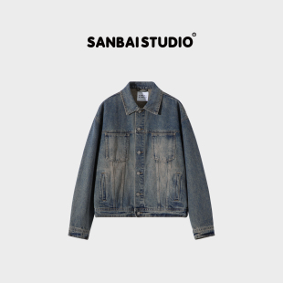水洗复古黄泥美式 春季 街头上衣 叁佰休闲牛仔外套夹克男士 SANBAI