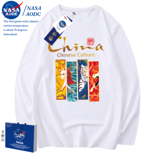 圆领情侣纯棉上衣潮打底衫 宽松长袖 NASA黑色T恤男春秋季 2023新款