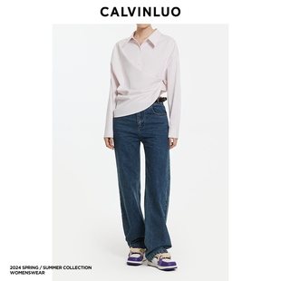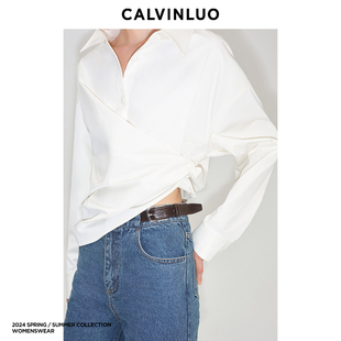 白 CALVINLUO 新品 24春夏 粉色 不对称交错衬衫