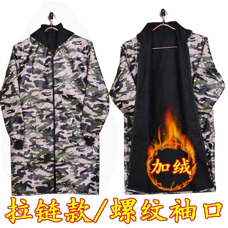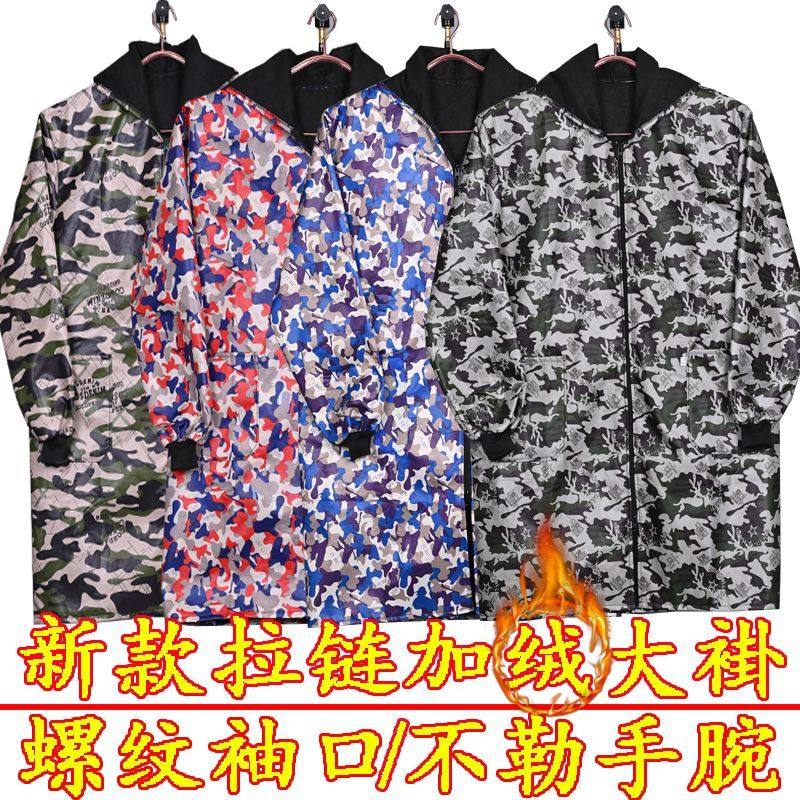 厨房工作服蓝大褂 四季 防水防脏成人男女罩衣围裙迷彩短袖 加厚长款