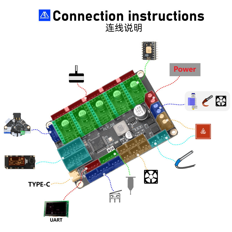 3D打印机零配件可用Klipper固件带Can芯片 D5主板 Mellow 5轴Fly