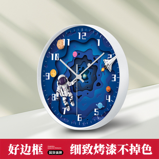 钟表挂钟静音男儿童太空动漫卡通卧室免打孔石英表圆形家用挂墙上