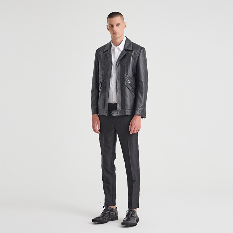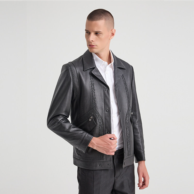 提花机车风皮衣外套55T111226107 时尚 ANDREW MACKENZIE意大利男装
