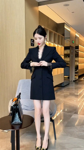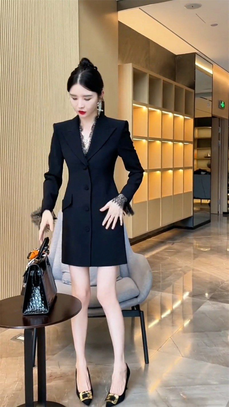 气质高级感蕾丝边连衣裙女25秋季 领职业包臀短裙 洋气收腰显瘦西装