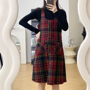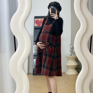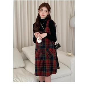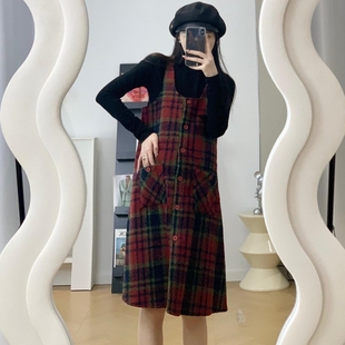 秋季 连衣裙女装 2023新款 时尚 格仔毛呢背带裙毛衣两件套 套装 孕妇装