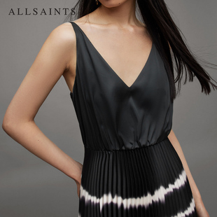 WD072X 吊带裙秋季 ALLSAINTS女士波纹扎染连衣裙两件套裙装 套头衫
