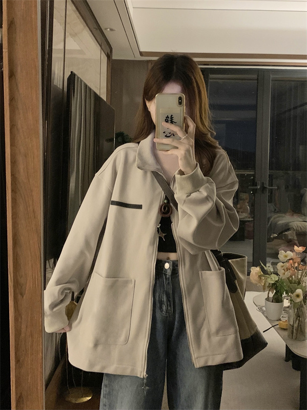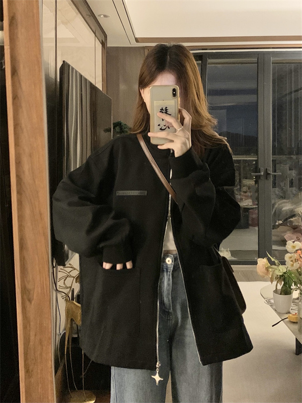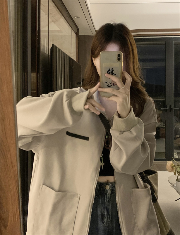翻领双拉链设计感小众开衫 新款 夹克宽松 卫衣外套女秋季 复古基础款