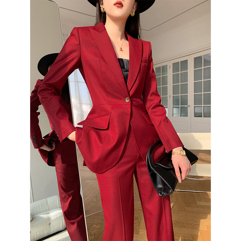 宽松垂感长裤 ArguE小众解构肌理垫肩西装 外套双层领设计西服套装