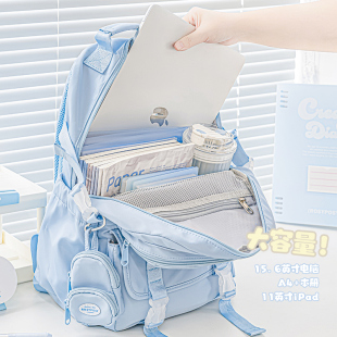 RosyPosy柔设双肩包书包初中女生痛包背包高颜值ins小众蓝色书包