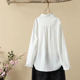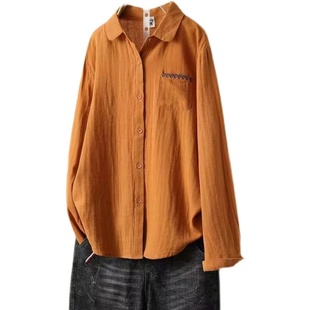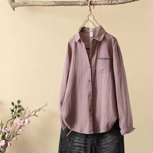 百搭复古上衣 小众色设计款 双层棉纱口袋小刺绣衬衫 文艺简约女长袖