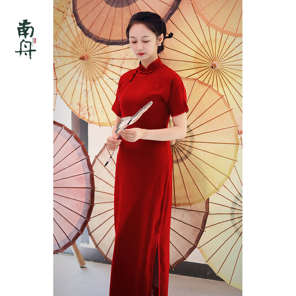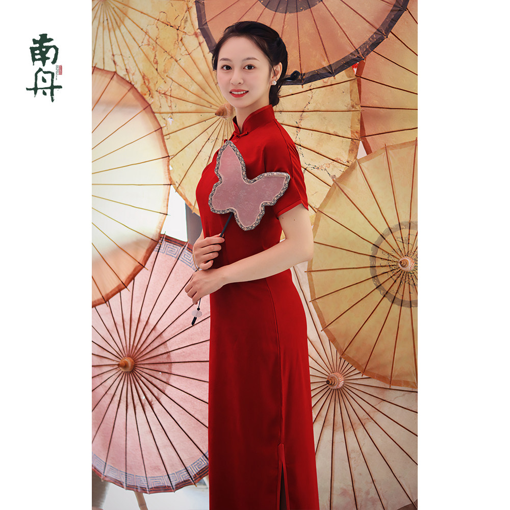 剪彩旗袍礼仪短款 织锦缎走秀表演拍照礼服演出服 旗袍改良复古修身