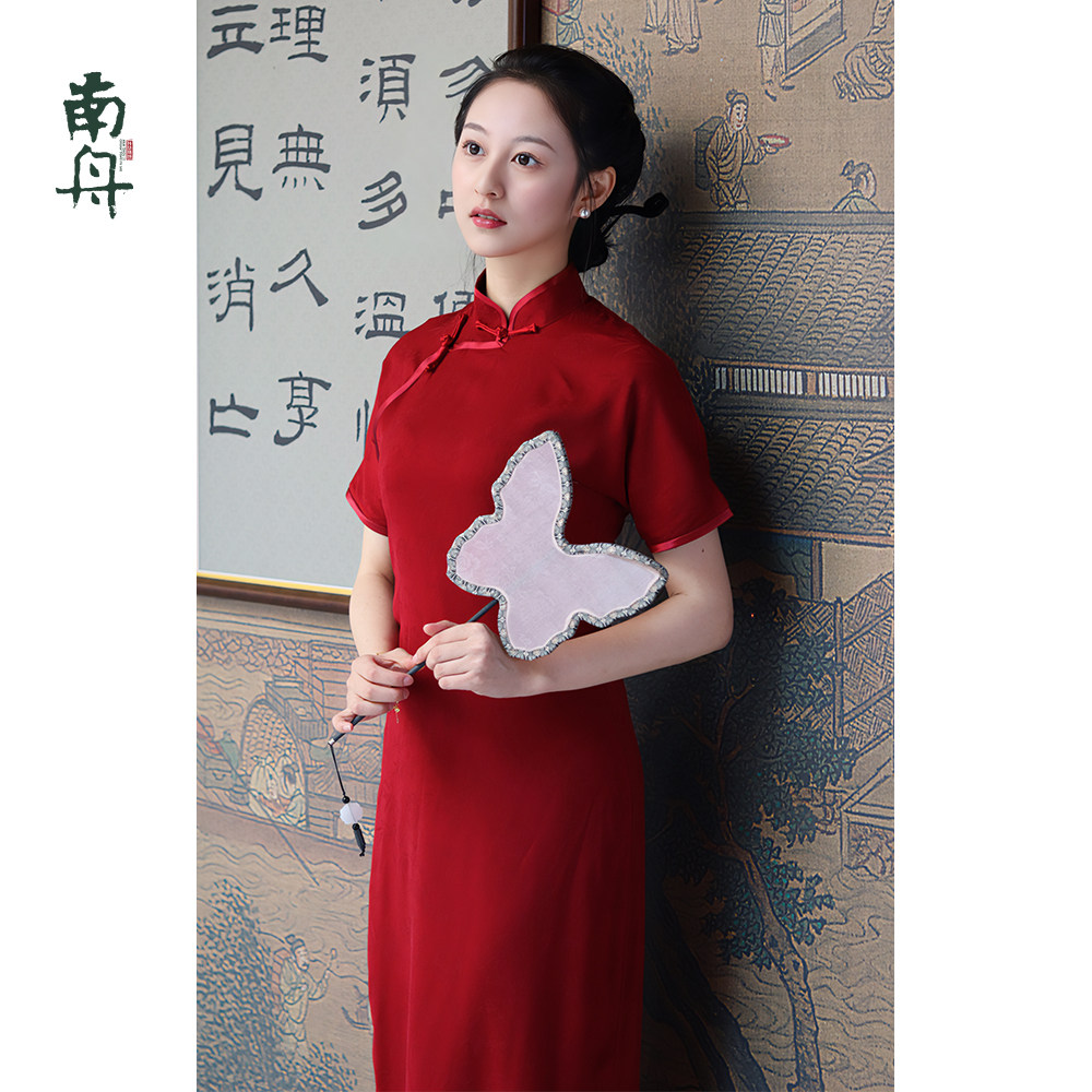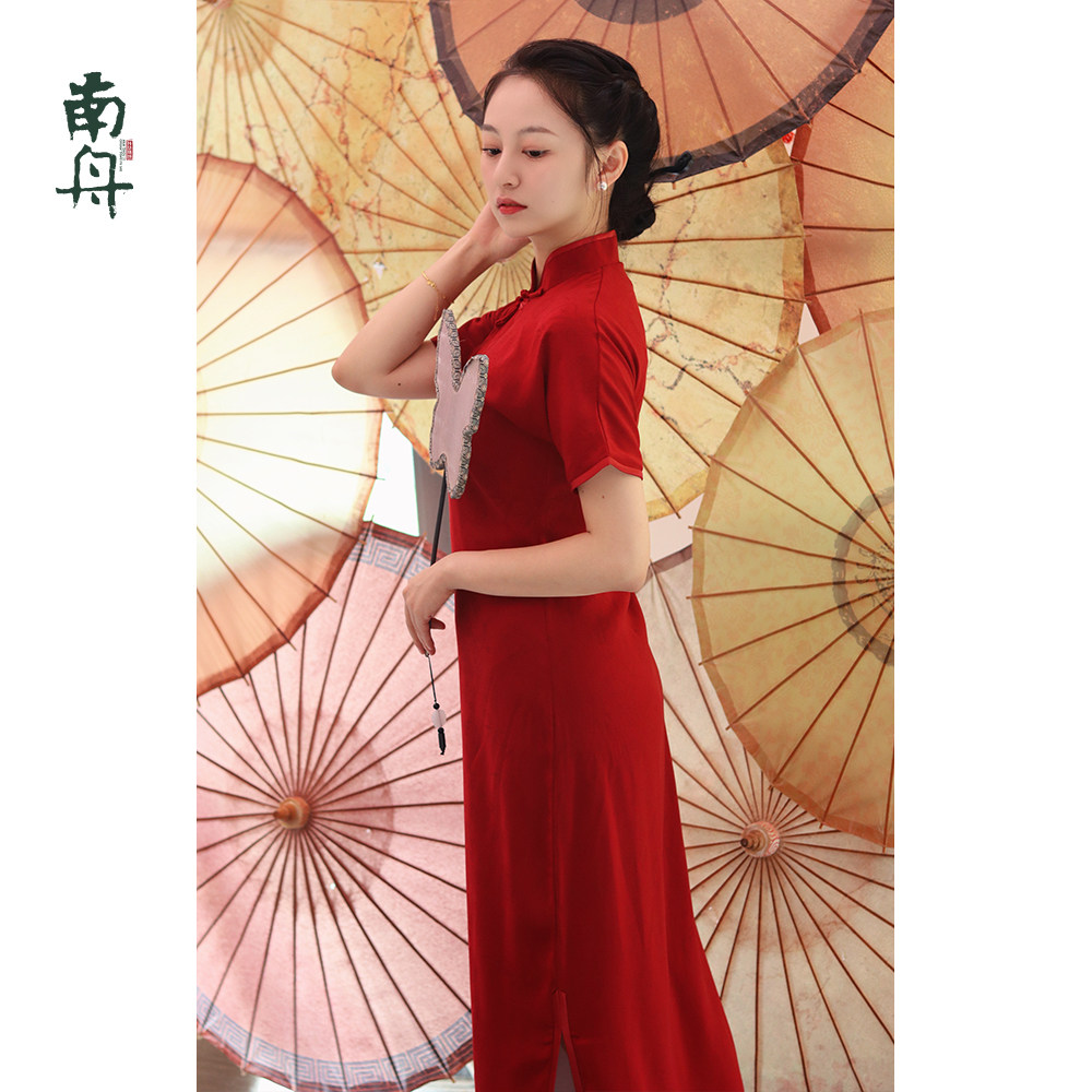 宽松版 短袖 改良旗袍裙气质 连衣裙女夏季 高级感黑色醋酸刺绣新中式
