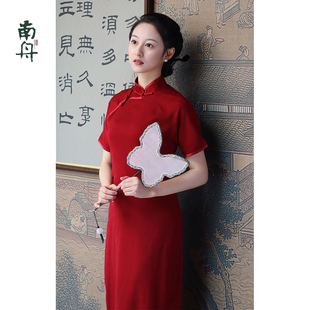 复古新中式 改良旗袍裙高端精致复古红色收腰蝴蝶印花连衣裙2026冬